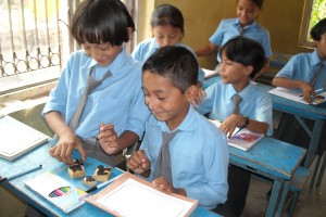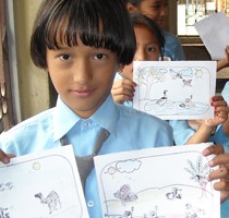 Most teachers in Nepal have had no teacher training, and instruct their students in a very formal manner. Schools have very little resources and rely on a few text books and the “chalk and talk” method of teaching the curriculum. The goal of this Teacher Training & Resources programme was to provide schools with an insight into creative lessons, and to inspire the teachers to use resources in an interesting and productive environment. The Paradise English Boarding School school in Bahati Pokhari, Naya Bazaar, Kathmandu was provided with resource boxes containing coloured paper, glue, scissors, materials for puppet making, wood block printing, drawing and colouring, card making, hanging decorations, dominoes and creative maths lessons, as well as a 2 CDs with educational games and curriculum resources. These, together with appropriate demonstration lessons and training, ensured that the teachers were empowered to teach in a more interesting manner, and that their students benefit with a new experience of quality, creative classroom lessons. The school teaches 160 children but is not a boarding school. This project was sponsored by TVF’s general donations.