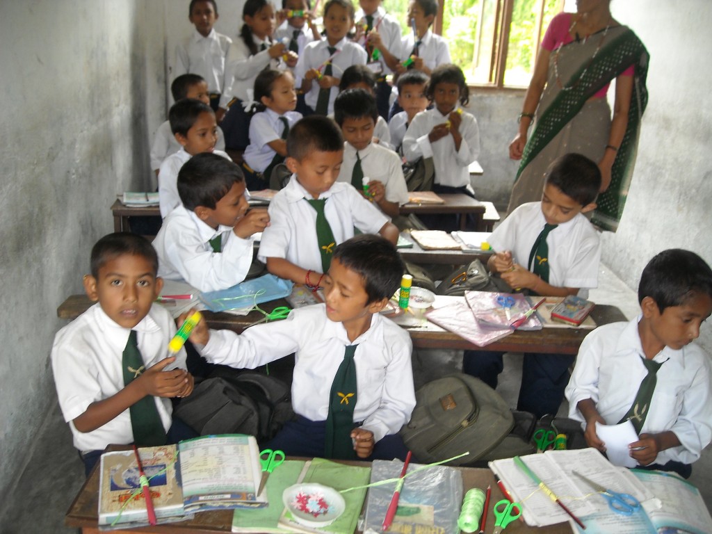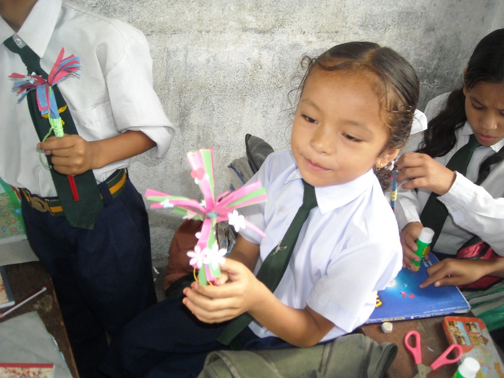Most teachers in Nepal have had no teacher training, and instruct their students in a very formal manner. Schools have very little resources and rely on a few text books and the “chalk and talk” method of teaching the curriculum. The goal of this Teacher Training & Resources programme was to provide schools with an insight into creative lessons, and to inspire the teachers to use resources in an interesting and productive environment. The xArmy School in Damside, Pokhara was provided with resource boxes containing coloured paper, glue, scissors, materials for puppet making, wood block printing, drawing and colouring, card making, hanging decorations, dominoes and creative maths lessons, as well as a 2 CDs with educational games and curriculum resources. The school hosts 450 students. These, together with appropriate demonstration lessons and training, ensured that the teachers were empowered to teach in a more interesting manner, and that their students benefit with a new experience of quality, creative classroom lessons. This project was sponsored by TVF’s general donations.